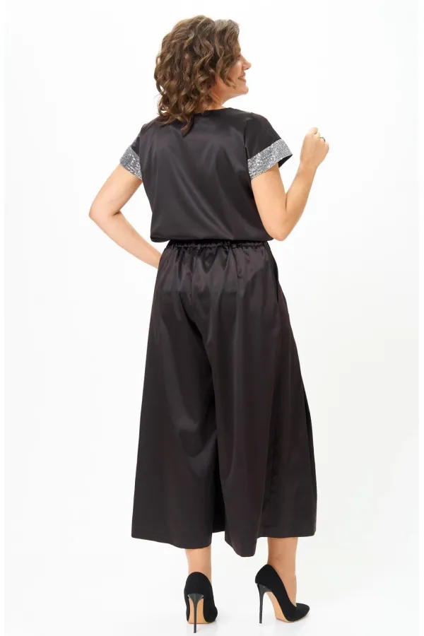 Юбка-брюки из атласа, это сочетание стиля и комфорта, они предназначены для особых моментов вашей жизни. Застежка спереди на молнию и резинка по талии обеспечивает удобство в носке, а широкие штанины зрительно вытягивают силуэт, подчёркивая достоинства и скрывая несовершенства фигуры. Они идеально дополнят образ на вечеринке, прогулке в сочетании с блузкой, топом или жакетом.