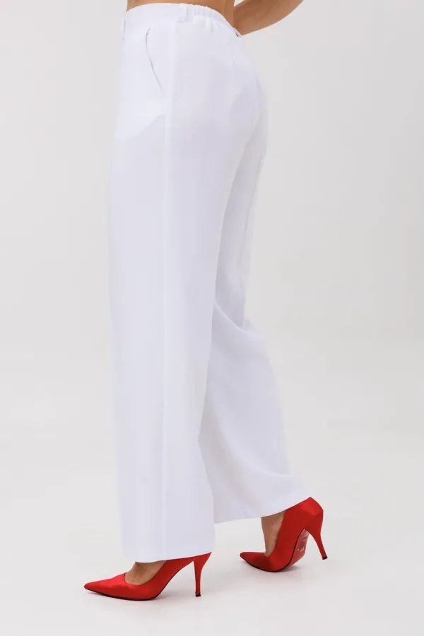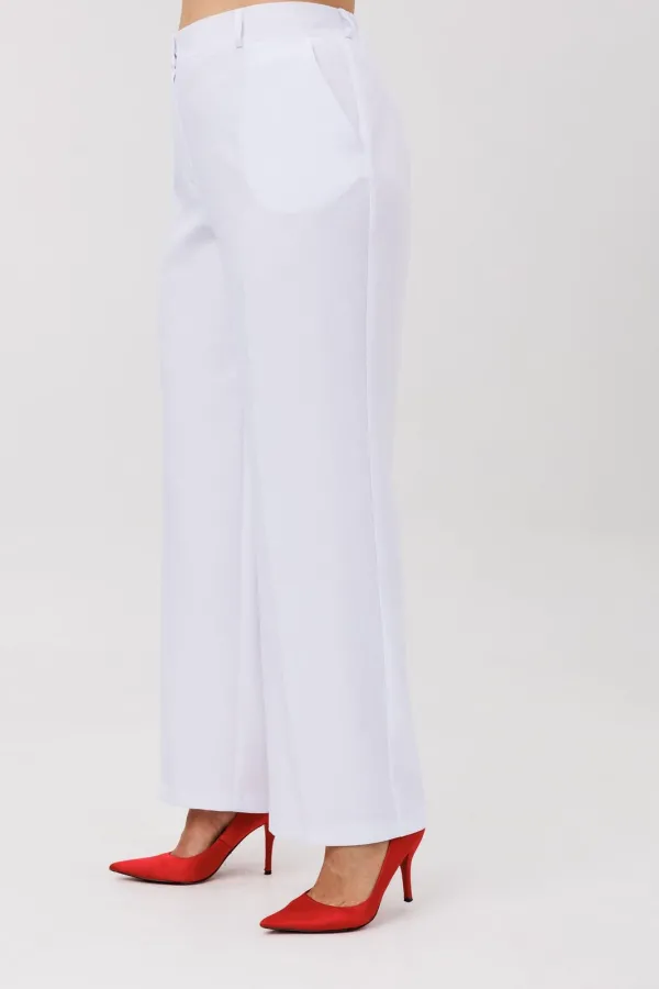 Плавное сужение к низу гармонично балансирует с объёмом в бёдрах, а эластичная вставка на поясе обеспечивает идеальную посадку с комфортом. Удобная застёжка и продуманное расположение швов создают безупречную линию, а свободный крой в области икр гарантирует, что брюки будут идеально сидеть, не обтягивая и не сковывая движений.