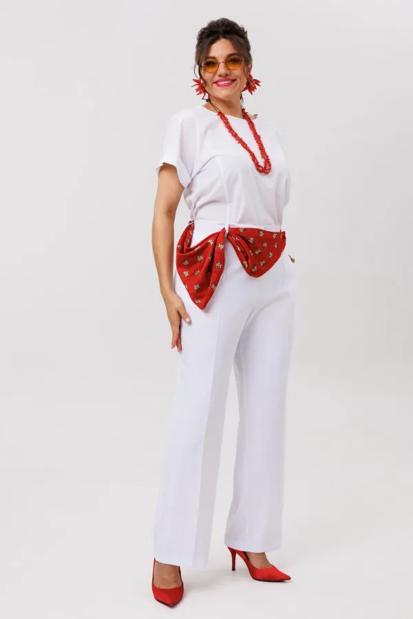 Эти классические брюки от Анелли созданы для тех, кто ценит безупречный крой и комфорт. Высокая посадка деликатно поддерживает фигуру, а прямой крой со стрелками визуально вытягивает силуэт, делая его стройнее. Модель брюк универсальная, подойдёт также и обладательницам пышных бедер.