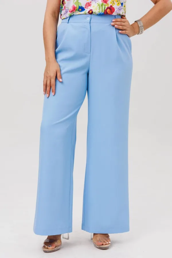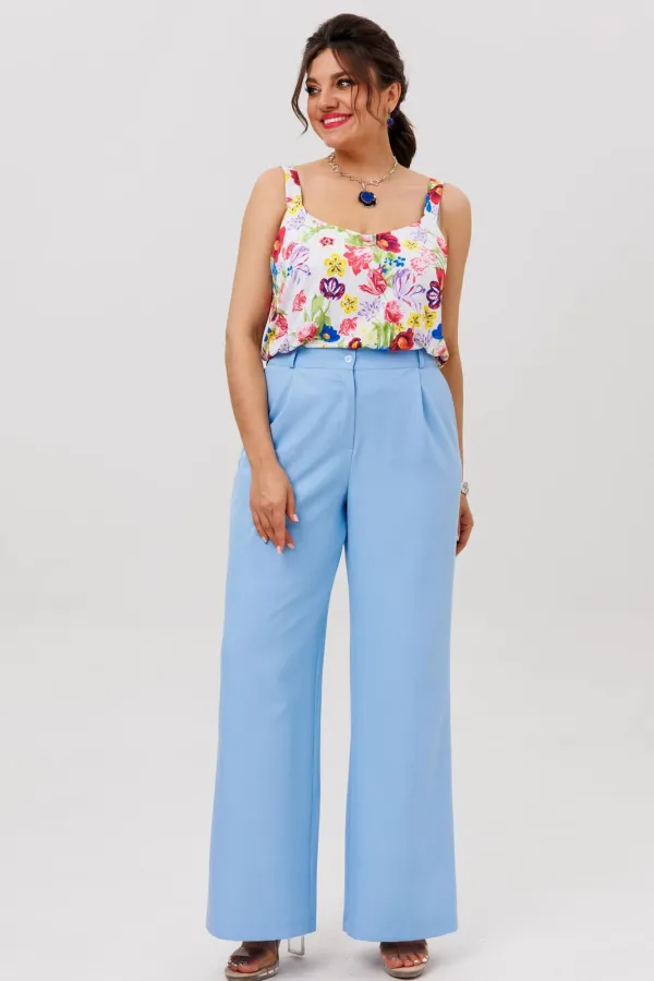 Эти брюки в нежном цвете «голубая гортензия» станут вашим незаменимым выбором как для повседневных образов, так и для особых случаев. Они могут быть стильно сочетаемыми с топами, блузами и обувью разных стилей, подчеркивая вашу индивидуальность и женственность.