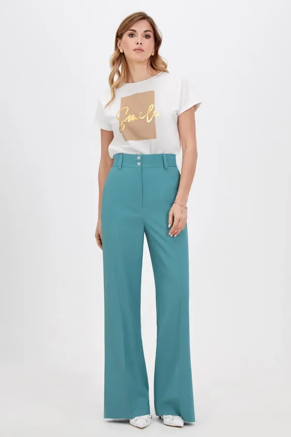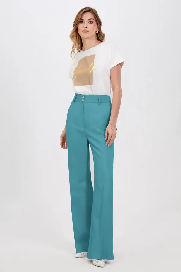 Классический шик! Модные и абсолютно удобные, широкие брюки с косыми боковыми карманами будут сопровождать вас в повседневной жизни. Модная длина создает стильные образы, подходящие как для офиса так и для повседневных м... Читать далее...