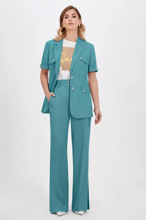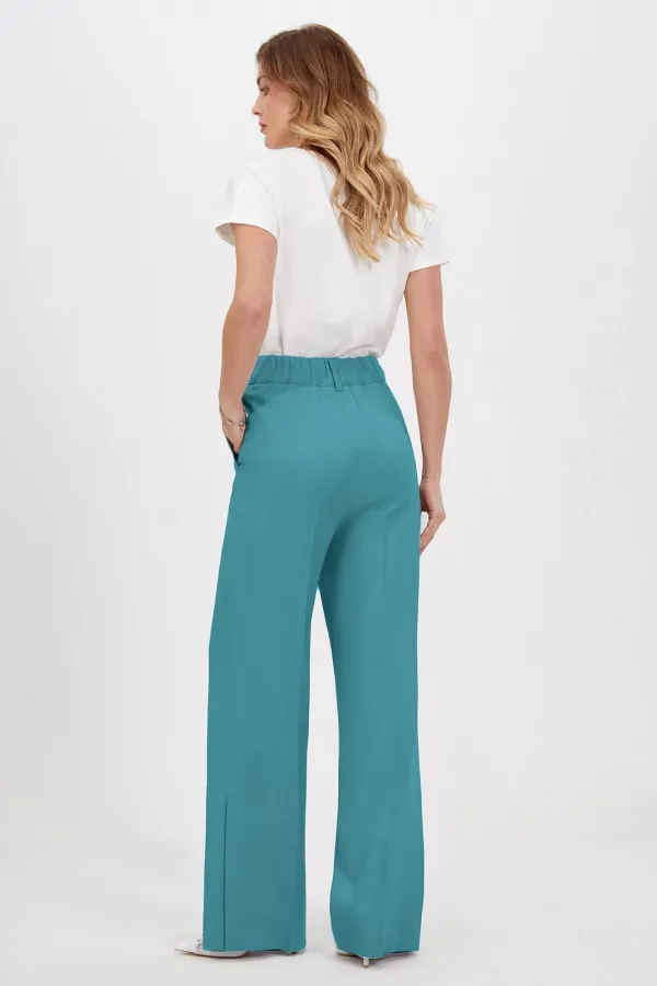 Классический шик! Модные и абсолютно удобные, широкие брюки с косыми боковыми карманами будут сопровождать вас в повседневной жизни. Модная длина создает стильные образы, подходящие как для офиса так и для повседневных мероприятий. Изделие на притачном поясе со шлёвками, собранном на эластичную тесьму по спинке и застёжкой по переду на молнию и петли-пуговицы, выполнили из приятного однотонного материала на основе льна. В пару к брюкам можно подобрать жакет из той же линейки для создания готового комплекта.