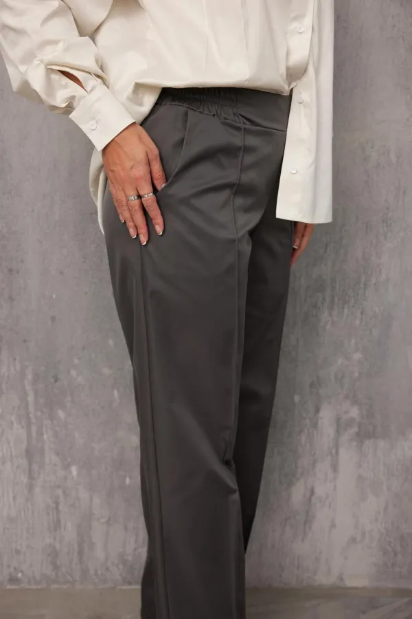 Удобные, широкие брюки - актуальная модель, в которой Вам будет комфортно на протяжении всего дня! Они помогут при создании современного расслабленного образа. Базовый оттенок графита гармонично впишется в гардероб, позволяя создавать различные образы.
