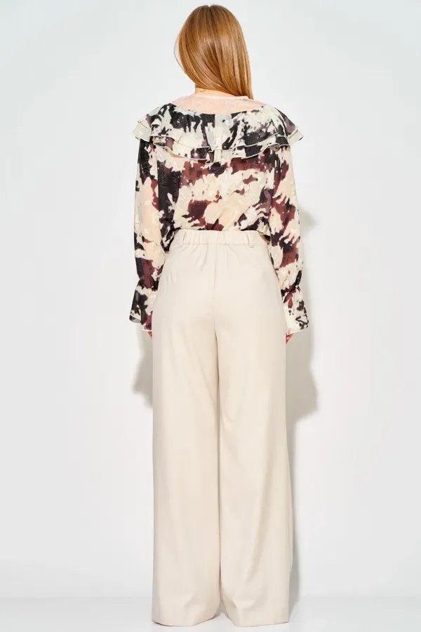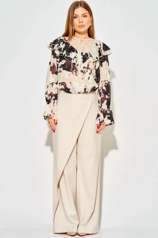 Эти брюки — ваш верный спутник как в офисе, так и на вечерних выходах. На фото с нашей блузой L-414. Создайте свой неповторимый стиль с этой моделью!