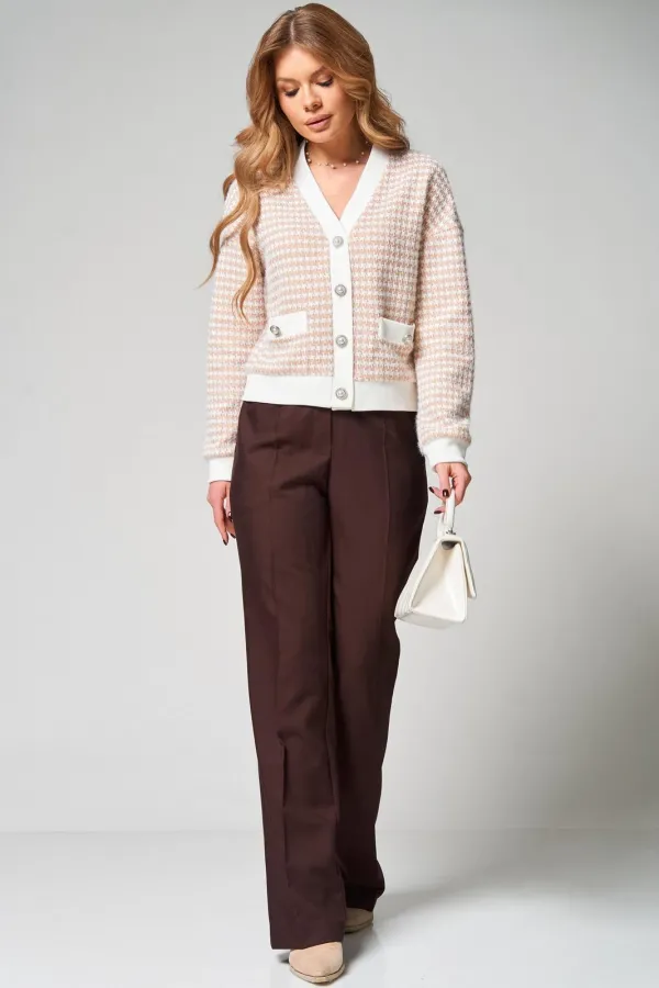 Наши модные брюки составят незаменимую часть вашего базового гардероба. На фото с трикотажным кардиганом L-642-1, так же идеально подойдет к нашим жакетам L-363, L-753 и L-953.