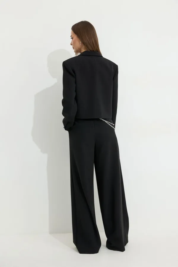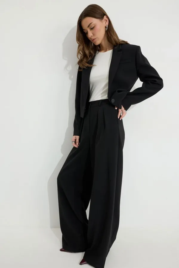 Брюки из поливискозной ткани, прямого, расширенного силуэта. На передних половинах брюк по две складки, выходящих из-под пояса, складки застрочены на несколько сантиметров. По переду застежка на молнию по типу гульфик.... Читать далее...