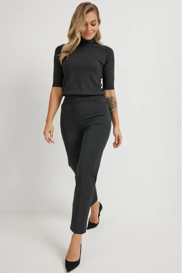 Классические женские брюки 7/8 от белорусского производителя демисезонного ассортимента. Брюки со стрелками, подходят для офиса, прогулок и отдыха. На передней половинке внутренний прорезной карман.Застёгиваются на молнию спереди. Ткань эластичная. В задней части пояса вставлена резинка. Ширина пояса 3,5 см. Посадка:Р-ры 46-48 –средняя, Р-ры 50-58- высокая. Для выбора нужного размера воспользуйтесь размерной сеткой ( таблица).Рост 164-170