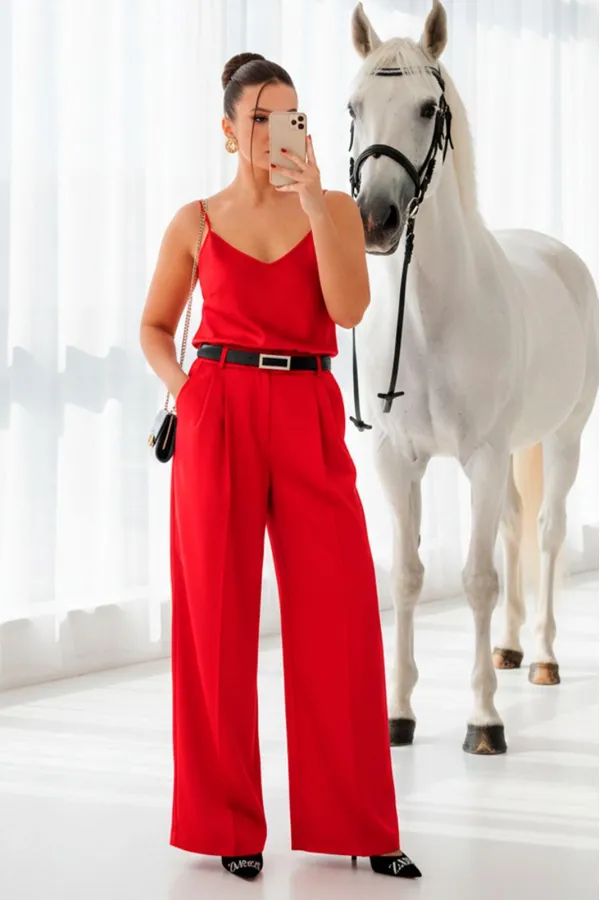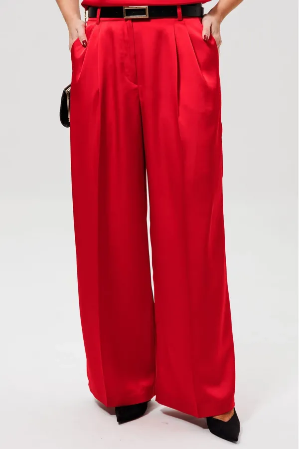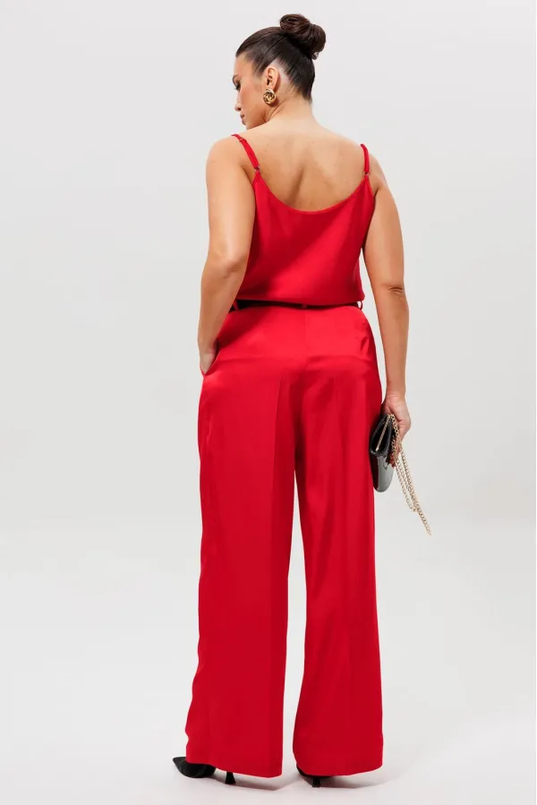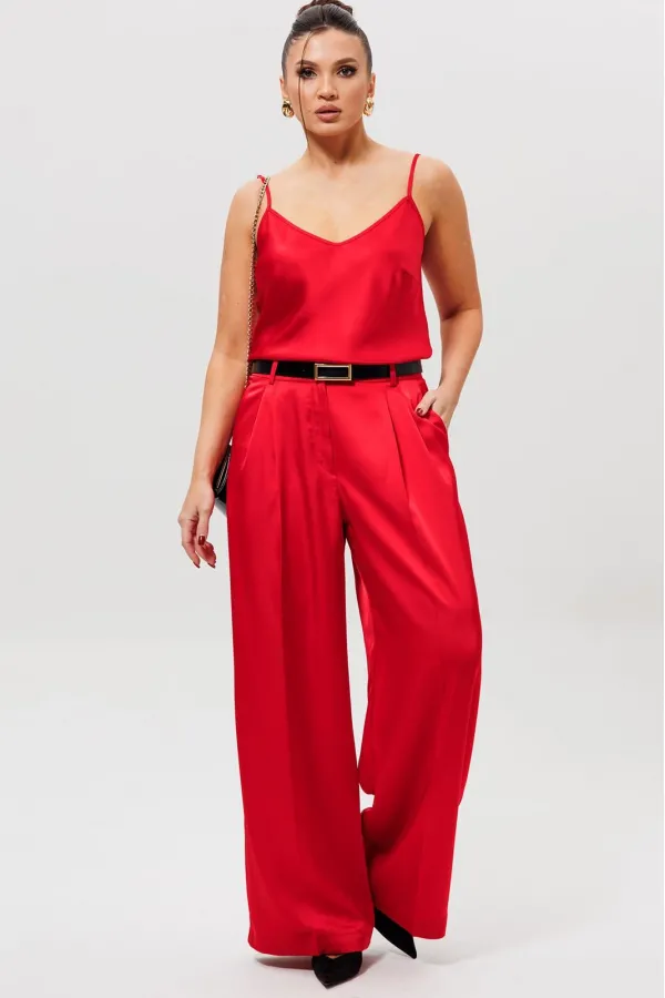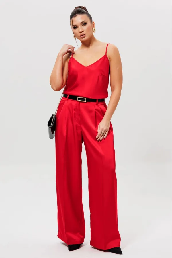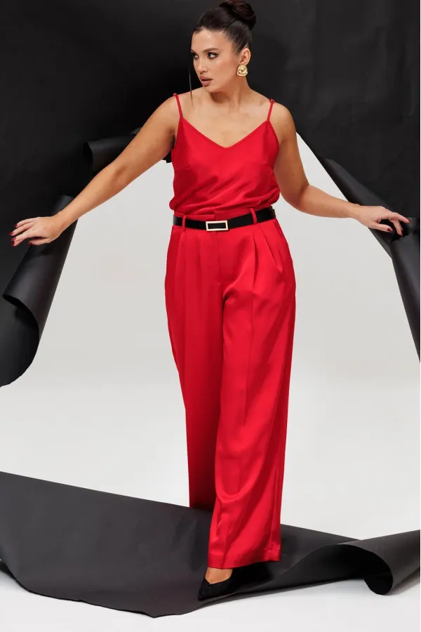 Брюки выполнены из атласной ткани, расширены к низу. На передних половинках брюк обработаны 2 складки и боковые карманы. На задних – талиевые вытачки. Застёжка на молнию и 2 потайных крючка. Эти атласные брюки (Арт. 1282) — Must Have для создания безупречного вечернего или праздничного образа. Модель представлена в двух богатых оттенках: насыщенном красном и глубоком шоколадном. Брюки выполнены из атласной ткани, которая мягко струится, подчеркивая изящество каждого движения. Универсальный крой позволяет сочетать их как с атласными топами (арт.1164) и блузами (например арт.1280) для выхода в свет, так и с кашемировыми джемперами для создания смарт-кэжуал образа. Атласные брюки с завышенной талией обеспечивают комфортную посадку и визуально вытягивают силуэт. Размеры 46-52.