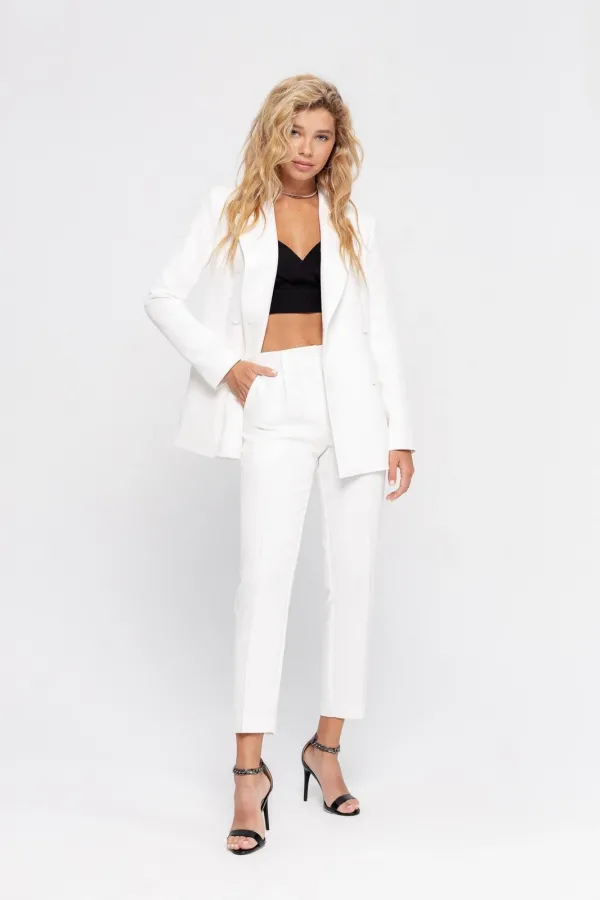 Классические укороченные брюки из текстильной ткани. Детали: брюки со средней посадкой, притачной пояс со шлевками, передние половины с небольшими мягкими складками и заутюженными стрелками, застежка на молнию и пуговицу... Читать далее...