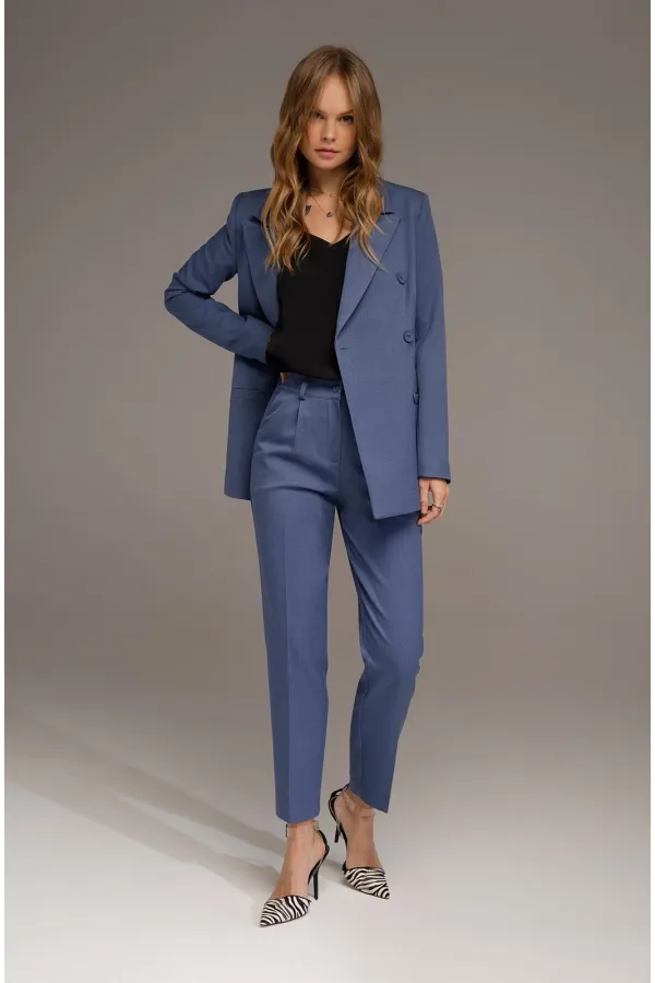Классические укороченные брюки из текстильной ткани. Детали: брюки со средней посадкой, притачной пояс со шлевками, передние половины с небольшими мягкими складками и заутюженными стрелками, застежка на молнию и пуговицу, боковые карманы.