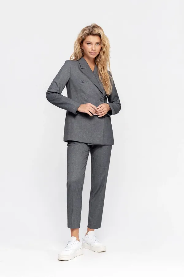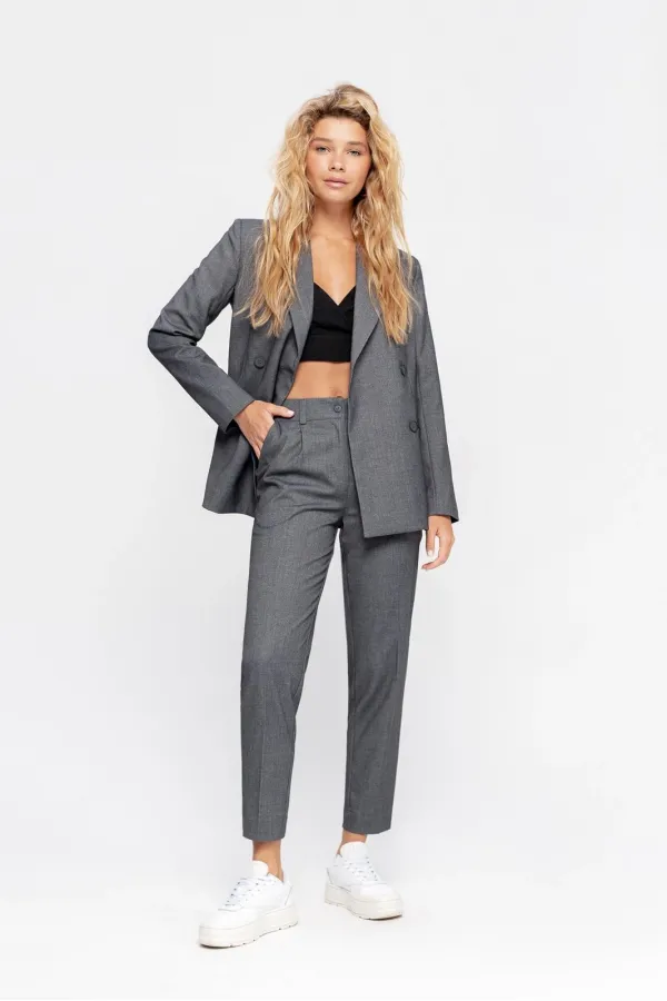Классические укороченные брюки из текстильной ткани. Детали: брюки со средней посадкой, притачной пояс со шлевками, передние половины с небольшими мягкими складками и заутюженными стрелками, застежка на молнию и пуговицу, боковые карманы.