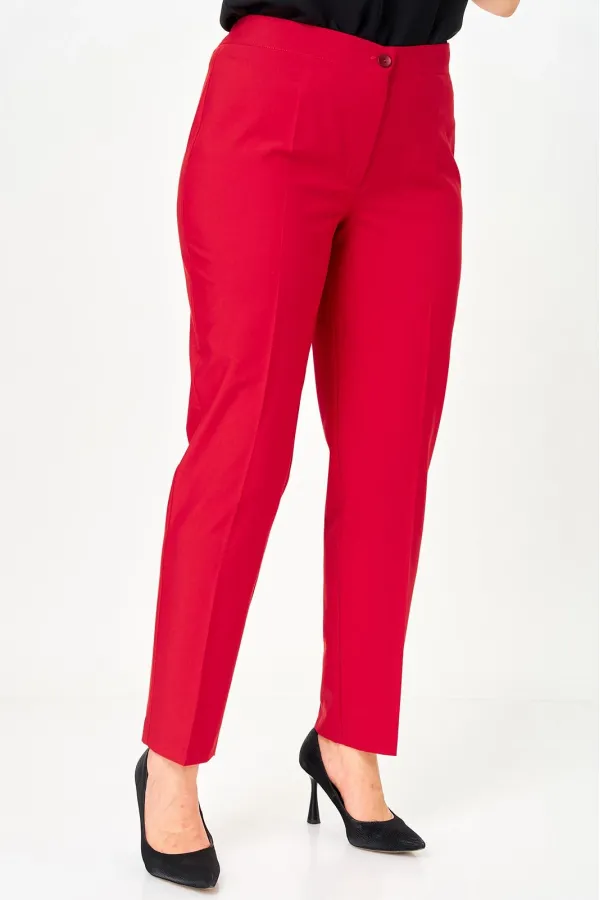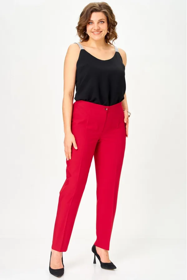 Брюки зауженные классические. Застежка на молнию, петлю и пуговицу. В поясе брюк по бокам вставлена резинка для удобства посадки на талии. Фурнитура от наличия может меняться. Длина брюк: 98 см.... Читать далее...