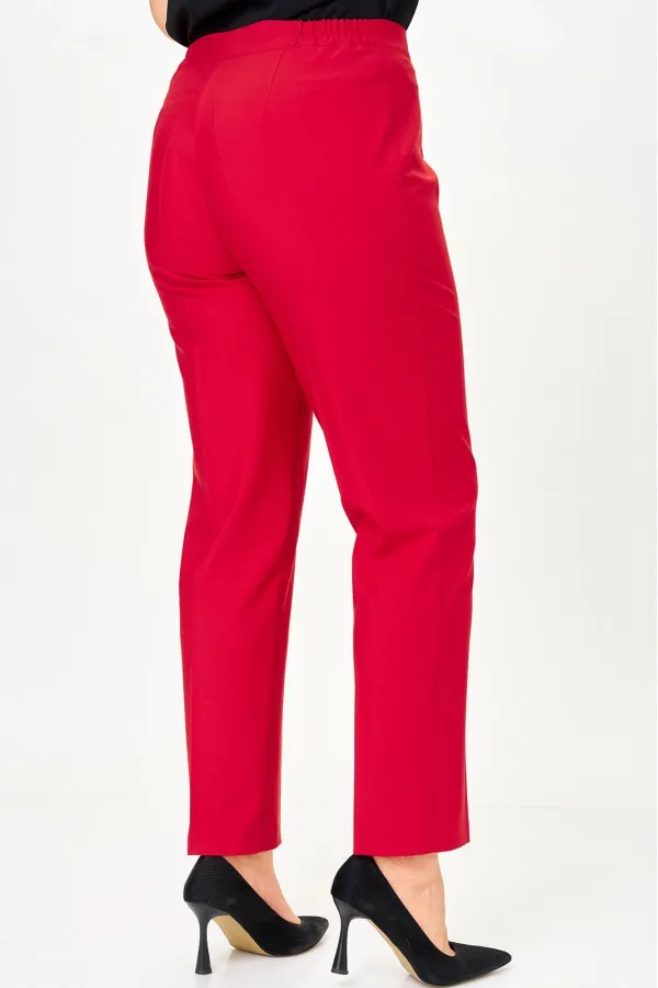 Брюки зауженные классические. Застежка на молнию, петлю и пуговицу. В поясе брюк по бокам вставлена резинка для удобства посадки на талии. Фурнитура от наличия может меняться.