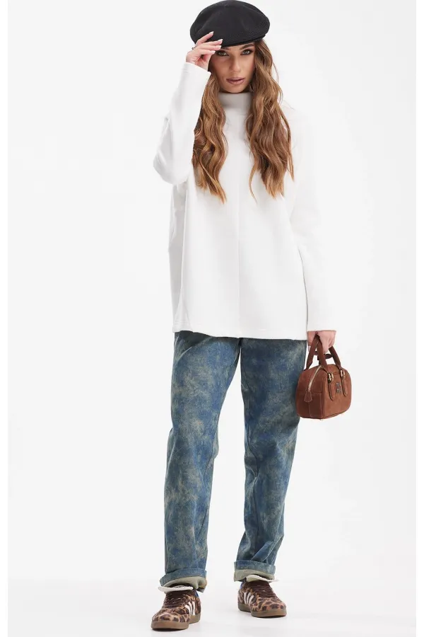 Брюки прямые из джинсовой ткани. Верх на притачном поясе со шлевками. Застежка по переду на молнию и пуговицу на поясе. На переде боковые карманы. На задних частях кокетка и карманы. На заднем кармане выполнена вышивка. ... Читать далее...