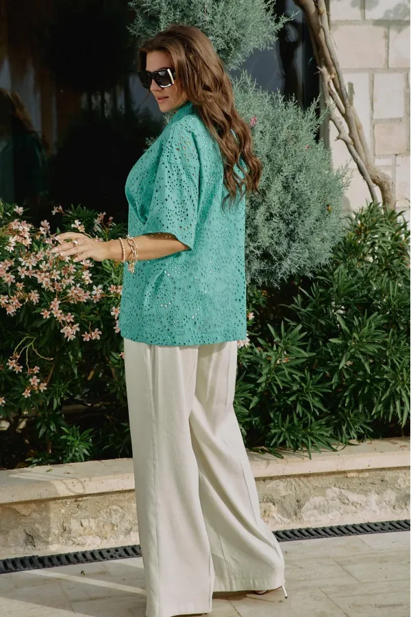 Брюки прямого силуэта по переду с стрелками, застроченными декоративной строчкой нитками в цвет. Пояс отрезной на резинке по всей длине. По переду выполнены наклонные карманы классической формы от пояса к боковому шву. По низу отделочная строчка нитками в цвет ткани. Базовые брюки идеально впишутся в ваш гардероб. Они идеально сидят на фигуре, модель комфортна натуральными материалами, она идеальна для летних прогулок. Брюки прекрасно сидят на талии, свободны по бедрам и широкие внизу, что визуально вытягивает фигуру и придает вам уверенности в каждом движении. Их удобно стилизовать с другими предметами вашего гардероба от футболок в спортивным стиле и блузок до классических жакетов и моделей свободного объема. Пластика натуральной ткани в сочетании льна и вискозы создает неповторимый шик в движении и придает статусность. Длина брюк 108 см.Подробные замеры смотрите на дополнительном фото. Подходит на рост 164-170.