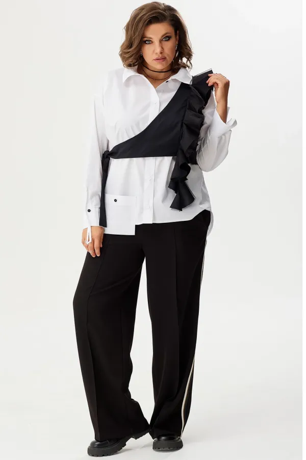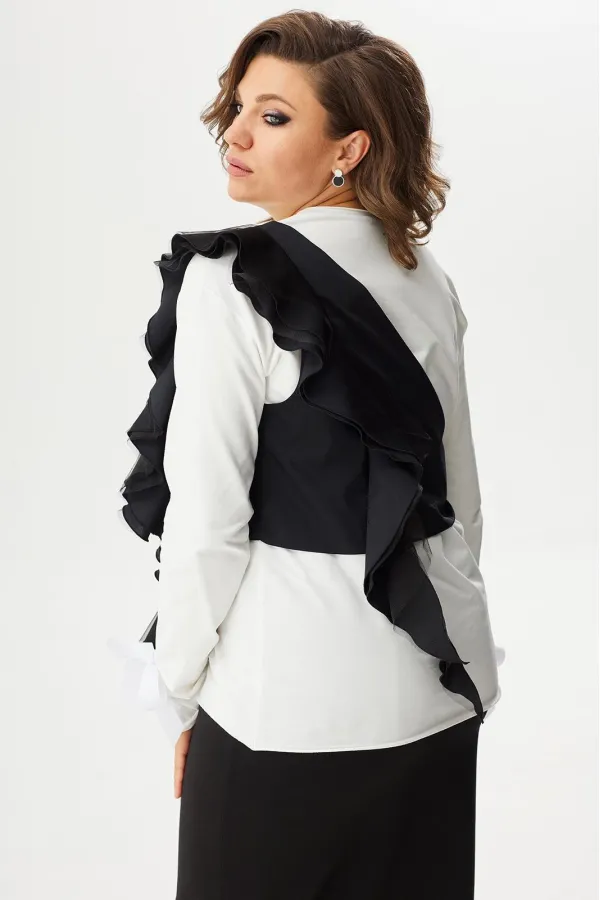 Трендовый жилет, ассиметричного кроя с акцентными воланами. Выполнен из текстильной хлопковой ткани в сочетании с фатином. Такой аксессуар в Вашем гардеробе даст огромное количество возможностей создавать стильные луки и оживлять привычные образы.