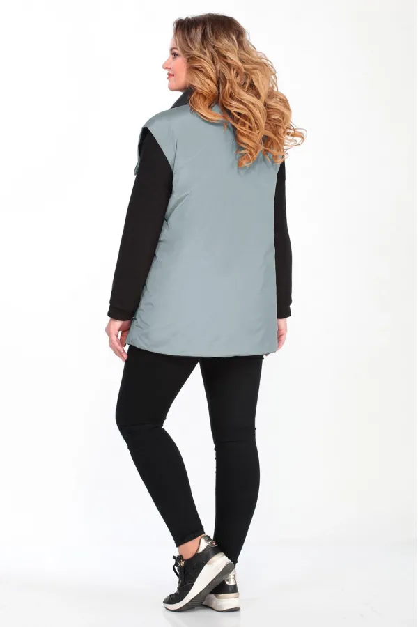 Жилет женский прямого силуэта,на синтепоне. Застежка ассиметричная на молнию. Воротник апаш. Перед отрезной по линии талии с карманами в шве. Полочка и спинка простеганы в верхней части. Линия низа переда асимметрична. Жилет на тонкой подкладке.Длина по спинке 75,5 см. Реальные замеры изделия 54 ог-123см, от-123см, об-128см, 56 ог-127см, от-127см, об-132см, 58 ог-131см, от-131см, об-136, 60 ог-135см,от-135см, об-140см.