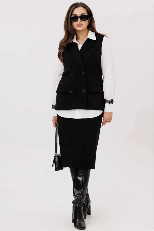 Идеальная жилетка для современной деловой женщины, которая ценит стиль и комфорт. Эта модель выполнена из качественной костюмной ткани (64% полиэстер, 34% вискоза, 3% спандекс), что обеспечивает отличную посадку и долгов... Читать далее...