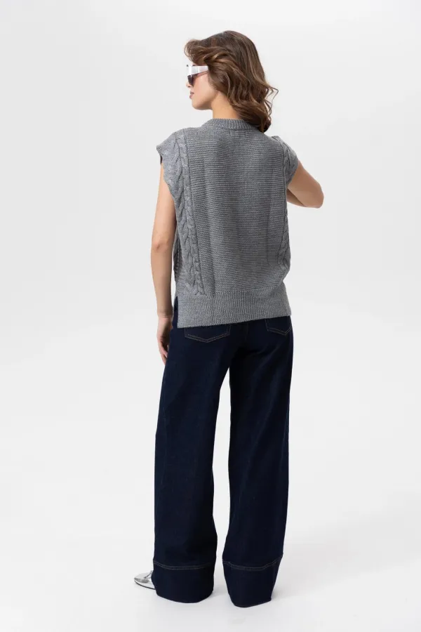 Мягкий, объёмный жилет прямого силуэта, связан из полушерстяной пряжи. Линия плеча занижена, модель oversize (оверсайз) горловина круглая, обработана прикеттлеванным воротником-стойкой. Жилет связан объёмным рельефным переплетением полуфанг. Не требует особого ухода, после стирки сохраняет цвет и форму. Подойдет как для офиса, так и для прогулок с друзьями. Носите его с классическими брюками и брюками палаццо, джинсами, юбками и шортами. Дополните образ сумкой и ботинками.