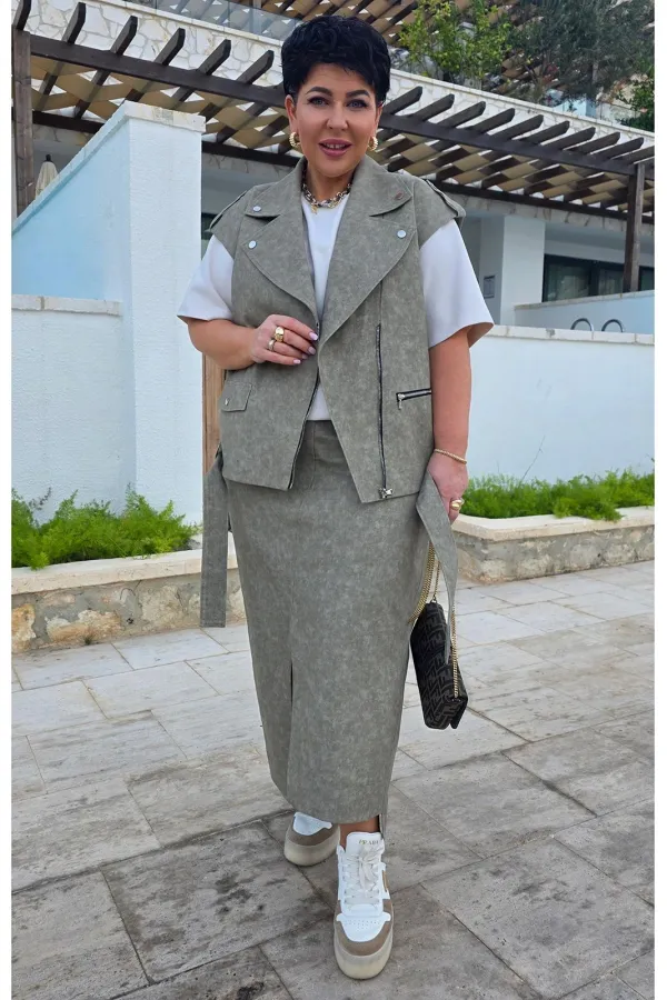 Жилет «оверсайз» силуэта, выполненный в стиле «косуха», удлинённый. Воротник пиджачного типа с отделкой декоративными кнопками по лацканам; ассиметричным бортом и застёжкой на тесьму молнию. По переду жилета декоративный клапан и прорезной карман с застёжкой на тесьму молнию. Линия плеча спущенная с декоративной патой и кнопкой. Спинка со средним швом. По низу жилета шлёвки и пояс из основной ткани. Жилет на подкладке. Стильный и современный жилет, выполненный из высококачественного денима, который идеально сочетает в себе комфорт и актуальный дизайн. Текстура денима с легкой потертостью придает жилету винтажный шарм и характер. Он идеально подходит для создания повседневных, но в то же время выразительных образов, обеспечивая универсальность для различных случаев. Жилет станет незаменимым элементом гардероба для тех, кто ценит комфорт, стиль и индивидуальность. Длина жилета по спинке 63 см (р 50-54), 65 см (р 56-60), ширина плеча 21 см.Подробные замеры смотрите на дополнительном фото. Подходит на рост 164-170.