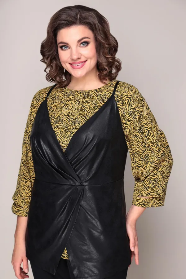 Оригинальный жилет из тонкого трикотажа, на тонких бретелях, с регулируемой высотой, полуприлегающего силуэта. Подходит для различных вариантов комплектов одежды, как нарядной, так и повседневной. Нижняя часть жилета- с запахом.