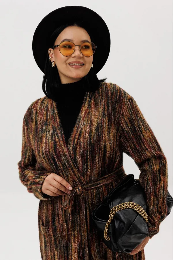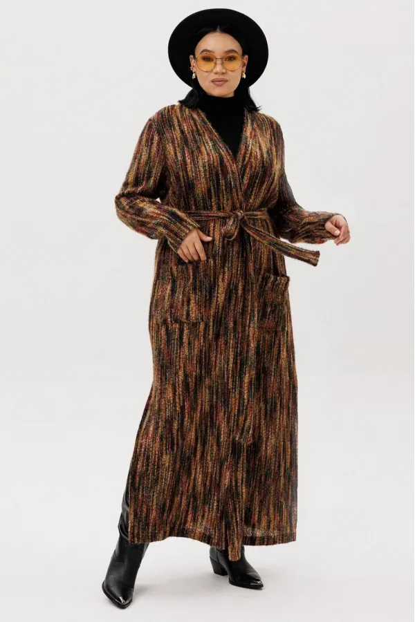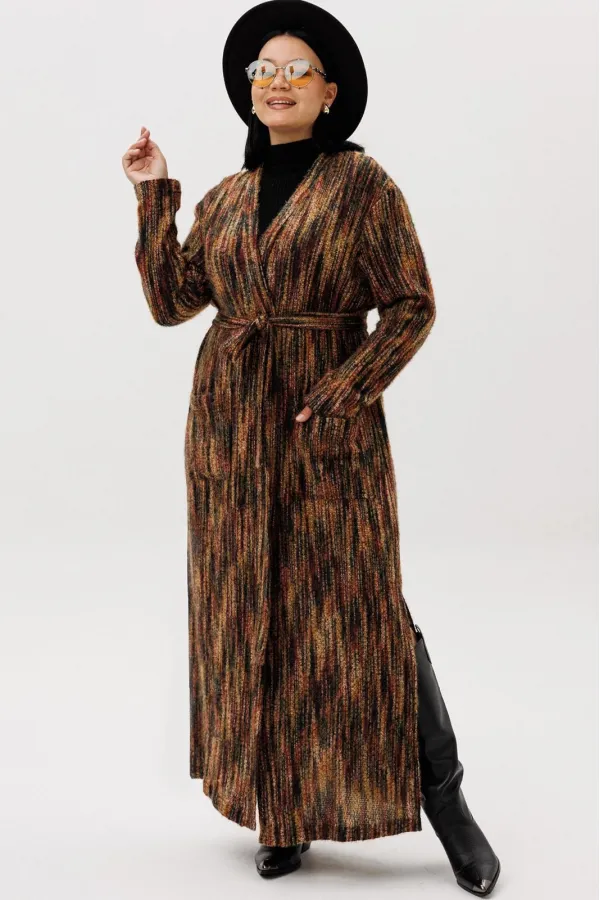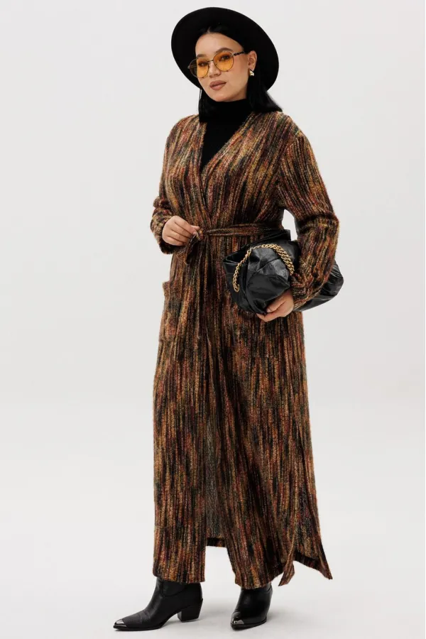 Женский кардиган – идеальный выбор для тех, кто ценит комфорт, стиль и универсальность. Эта вязаная кофта предназначена для женщин, желающих всегда выглядеть модно, будь то осень, зима, весна или лето. Благодаря удлиненному крою, изделие подходит как для повседневной носки, так и для особых случаев, подчеркивая вашу индивидуальность и женственность. Лёгкий трикотажный материал делает эту вещь отличным вариантом для теплого времени года, обеспечивает необходимое тепло в прохладную погоду. Кофта отлично садится на любые типы фигуры в стиле оверсайз, идеально подходит для беременных. Модель выполнена в трендовых цветах 2025 года, что гарантирует актуальность вашего гардероба. Этот женский кардиган легко комбинируется с другой одеждой – от строгих брюк до легких платьев, подходит для офиса и прогулок. Особое внимание уделено деталям и аккуратной отделке. Чтобы ничего не сковывало ваши движения- по бокам разрезы, а для практичности - накладные карманы и пояс. Нарядная и женственная модель подчеркивает достоинства фигуры и делает образ завершенным. Главное конкурентное преимущество – сочетание качества премиальной вязки и современного дизайна, что выделяет этот товар среди других кофт и кардиганов на рынке. Если вы ищете стильные, трендовые и одновременно практичные решения, выбирайте этот вариант – он создан для женщин, которые ценят комфорт и индивидуальность. Длина по спинке: (50-54)-129см, (56-60) -131см, Длина рукава: (50-54)-60см, (56-60): 61см