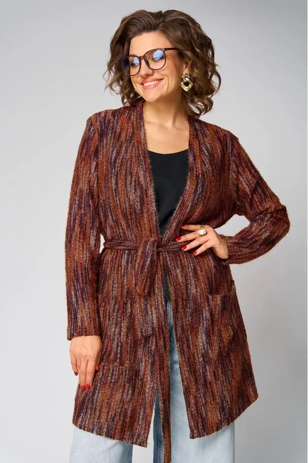 Женский кардиган – идеальный выбор для тех, кто ценит комфорт, стиль и универсальность. Эта вязаная кофта предназначена для женщин, желающих всегда выглядеть модно, будь то осень, зима, весна или лето. Благодаря своему крою, изделие подходит как для повседневной носки, так и для особых случаев, подчеркивая вашу индивидуальность и женственность. Лёгкий трикотажный материал делает эту вещь отличным вариантом для теплого времени года, обеспечивает необходимое тепло в прохладную погоду. Кофта отлично садится на любые типы фигуры в стиле оверсайз, идеально подходит для беременных. Модель выполнена в трендовых цветах 2025 года, что гарантирует актуальность вашего гардероба. Этот женский кардиган легко комбинируется с другой одеждой – от строгих брюк до легких платьев, подходит для офиса и прогулок. Особое внимание уделено деталям и аккуратной отделке. Чтобы ничего не сковывало ваши движения, а для практичности - накладные карманы и пояс. Нарядная и женственная модель подчеркивает достоинства фигуры и делает образ завершенным. Главное конкурентное преимущество – сочетание качества премиальной вязки и современного дизайна, что выделяет этот товар среди других кофт и кардиганов на рынке. Если вы ищете стильные, трендовые и одновременно практичные решения, выбирайте этот вариант – он создан для женщин, которые ценят комфорт и индивидуальность. Длина по спинке: (50-54)-88см, (56-60) -92см, Длина рукава: (50-54)-62см, (56-60): 64см