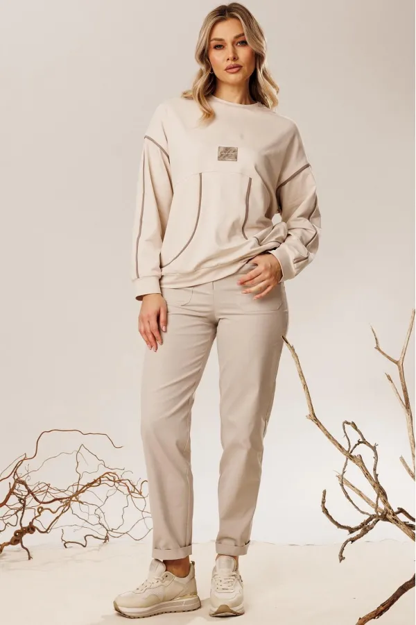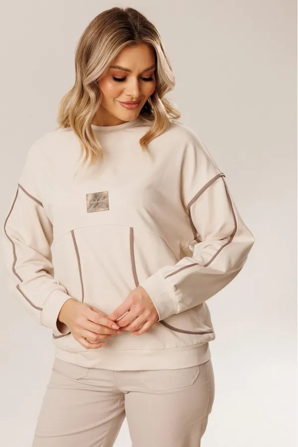 Силуэт: Свободный Вырез горловины: округлый Дополнительное описание: джемпер из качественной трикотажной ткани, с декоративными отделочными кантами, нашивкой и фигурным подрезом по полочке. Рукав спущенны... Читать далее...