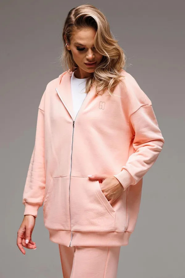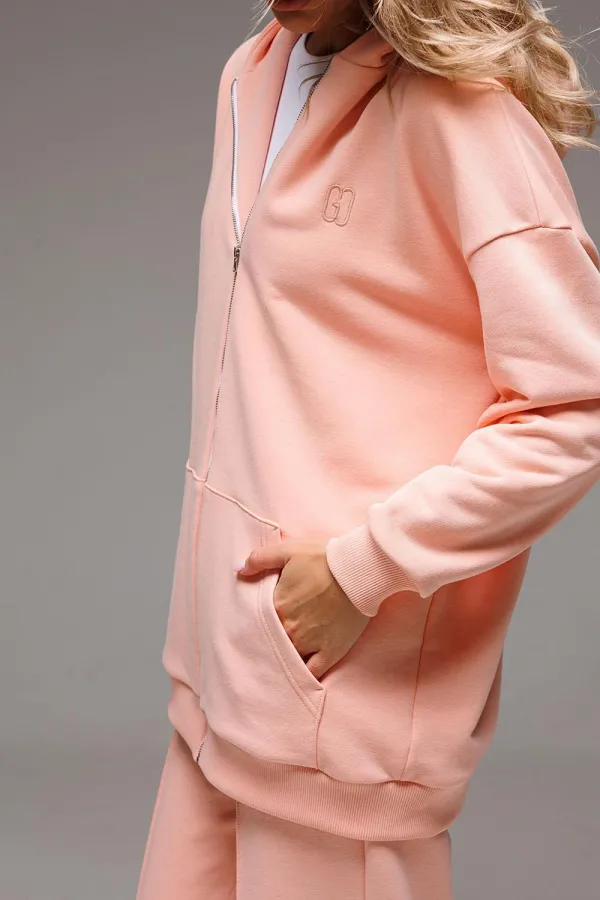 Удлиненное женское оверсайз худи с металлической застежкой-молнией составит отличную комбинацию для любого образа.