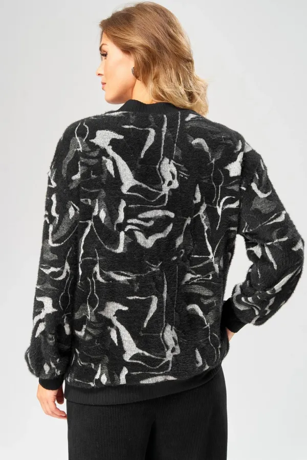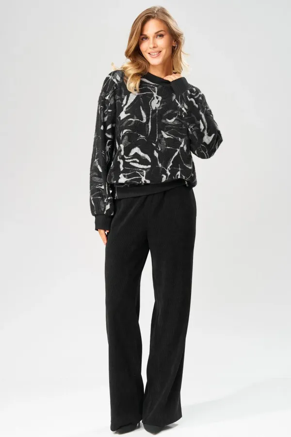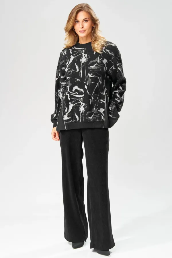 Уютный оригинальный джемпер для повседневного использования. Образ на фото с нашими брюками из модного трикотажного вельвета L-693-2.