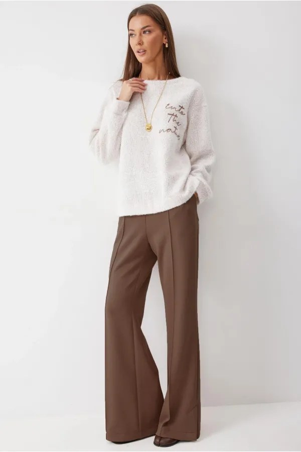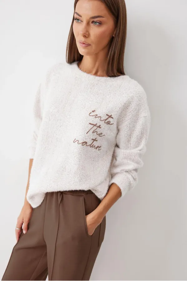 Джемпер прямого силуэта из комфортного трикотажного полотна. Горловина округлая. Рукав со спущенной линией плеча, по низу манжета. По низу джемпера в боковых швах разрезы. По переду дизайнерская вышивка. Обращаем ваше внимание, что фурнитура может отличаться от фото.