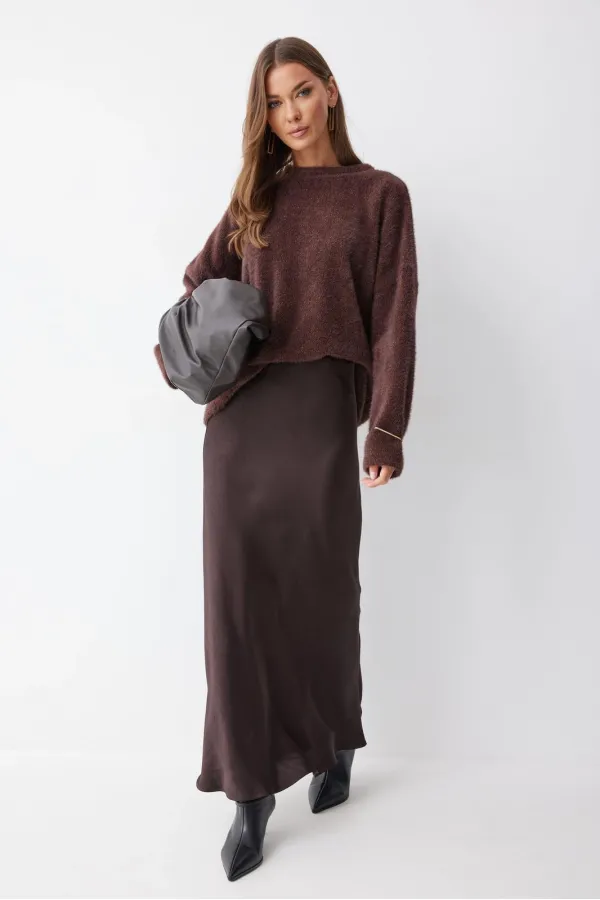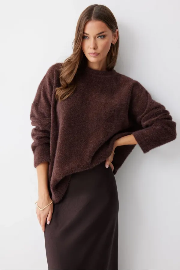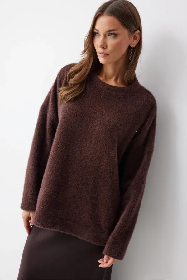 Джемпер прямого силуэта из трикотажного полотна. Горловина округлая. Рукав со спущенной линией плеча.