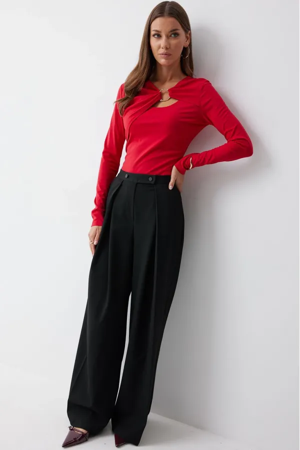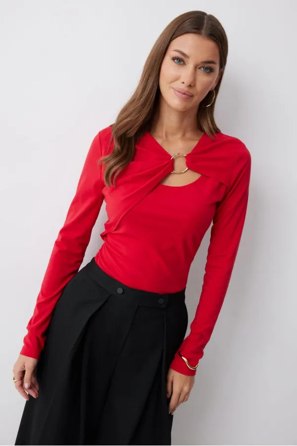 Джемпер прилегающего силуэта из трикотажного полотна. Горловина с фигурным вырезом декоративными складками и фурнитурой. Рукав втачной удлиненный . Обращаем ваше внимание, что фурнитура может отличаться от фото.