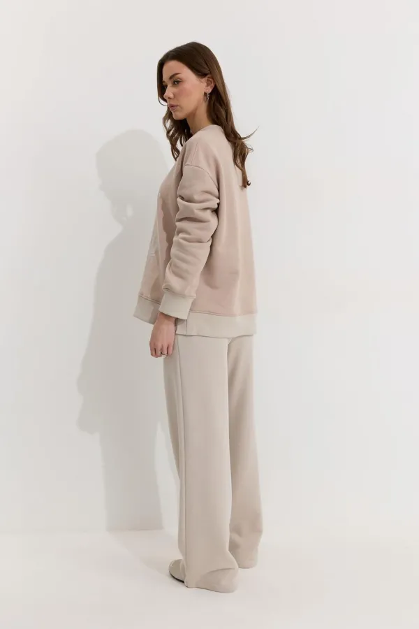 Джемпер прямого силуэта из трикотажного полотна. Горловина округлая. Рукав со спущенной линией плеча, по низу манжета из отделочной ткани. По низу джемпера в боковых швах декоративная шлица с кнопками. По низу джемпера п... Читать далее...