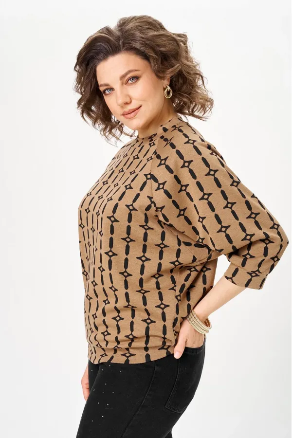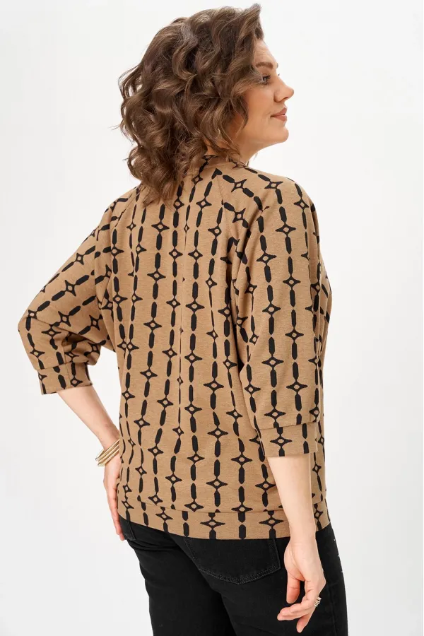 Рукав реглан — важная деталь: мягко формирует плечевую линию, не утяжеляет верх и делает посадку более деликатной. Свободный силуэт не обтягивает, но при этом не выглядит мешковато.