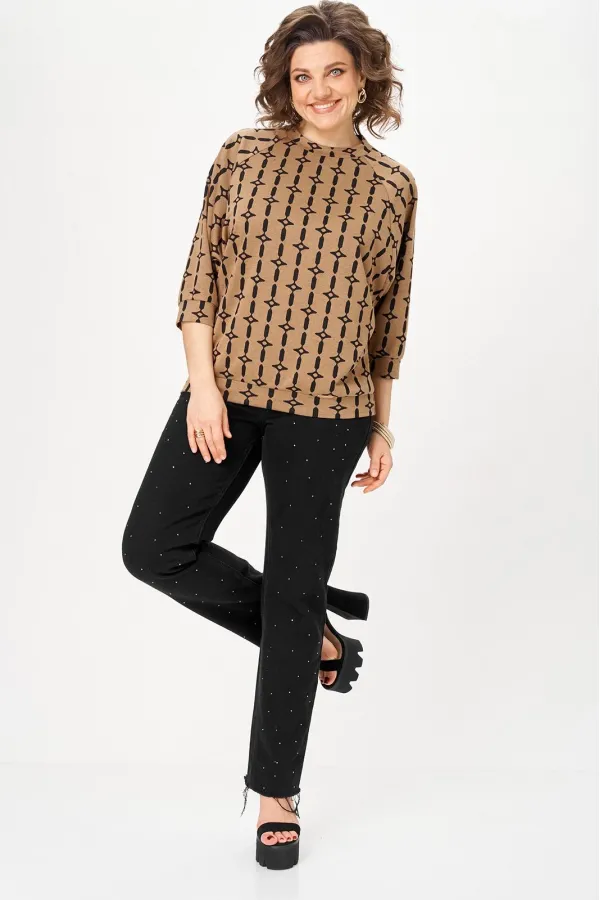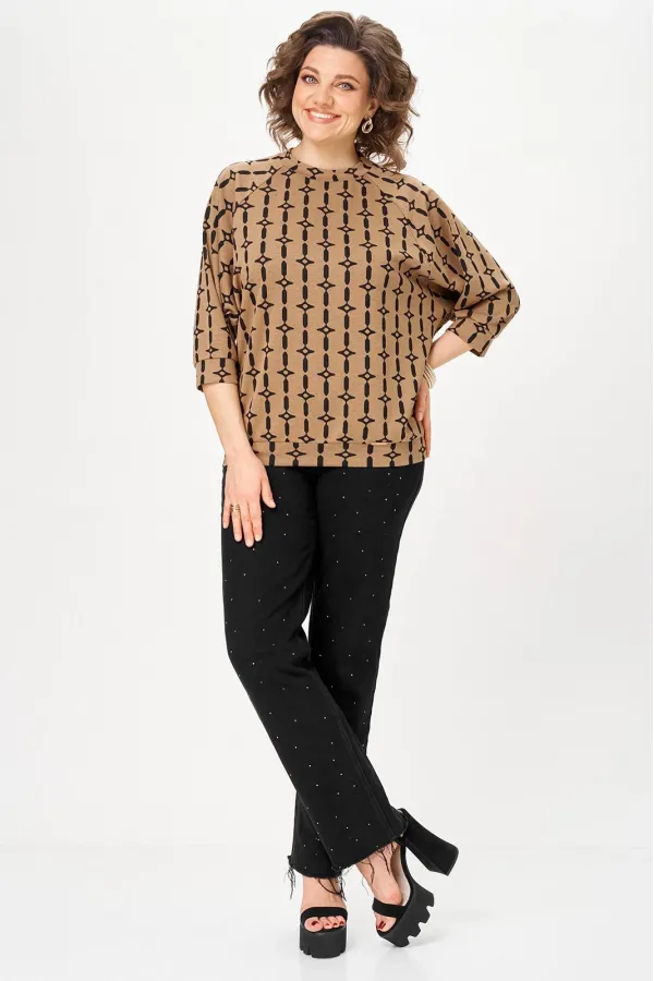 Трикотаж средней плотности мягкий, пластичный и комфортный к телу. Он держит форму, не просвечивает и не теряет аккуратный вид в течение дня.