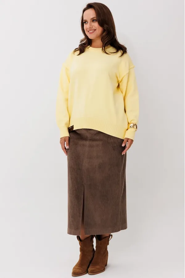 Джемпер свободного силуэта. Горловина круглая, рукава спущенные, плечевые швы специально вывернуты на лицо изделия. Ткань мягкая, плотная, хорошшо держит форму.рукава и низ изделия на свободной вязанной резинке. По низу ... Читать далее...