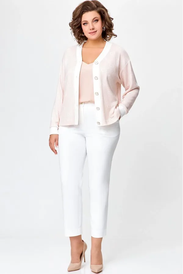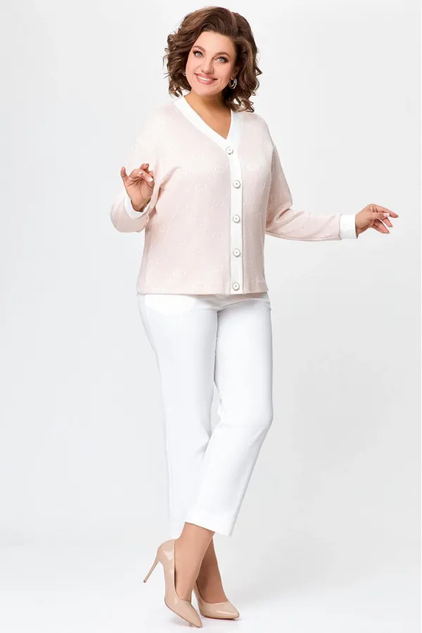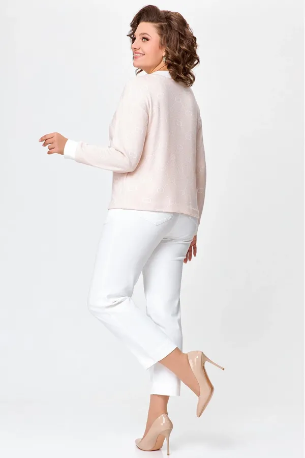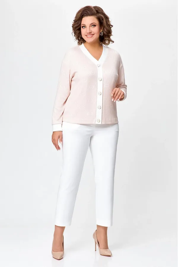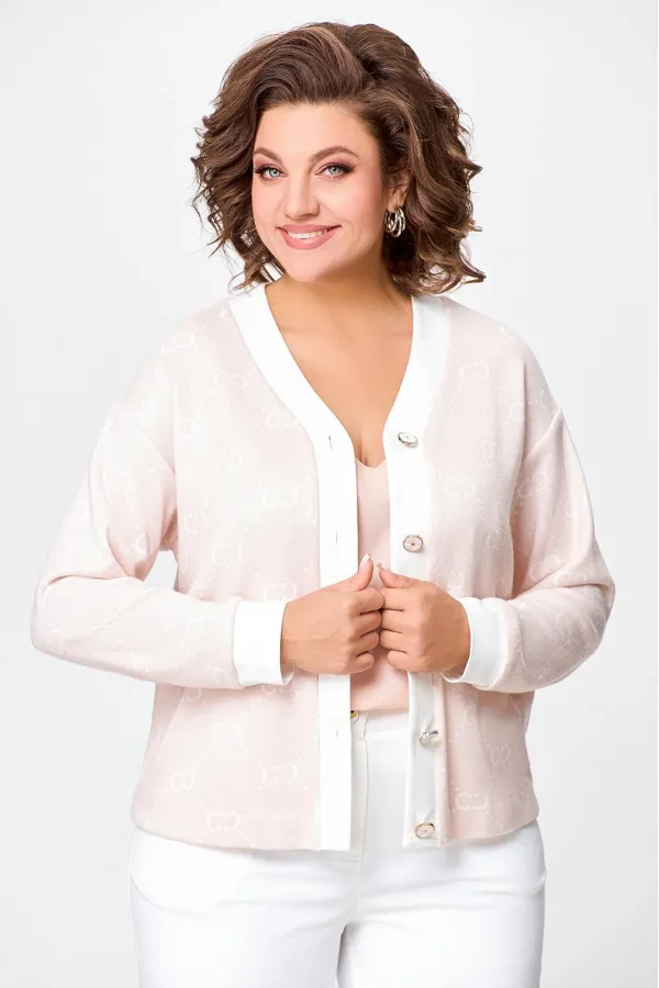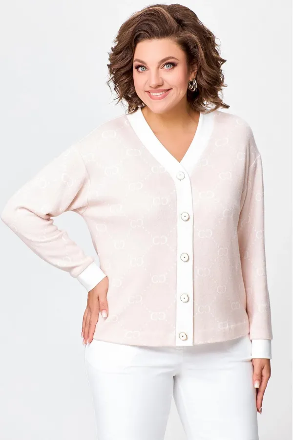 Джемпер женский из мягкого трикотажного полотна. Джемпер прямого силуэта с центральной бортовой застёжкой Спинка цельнокроеная с отрезной кокеткой из отделочного материала по горловине. По переду обработана отрезная пла... Читать далее...