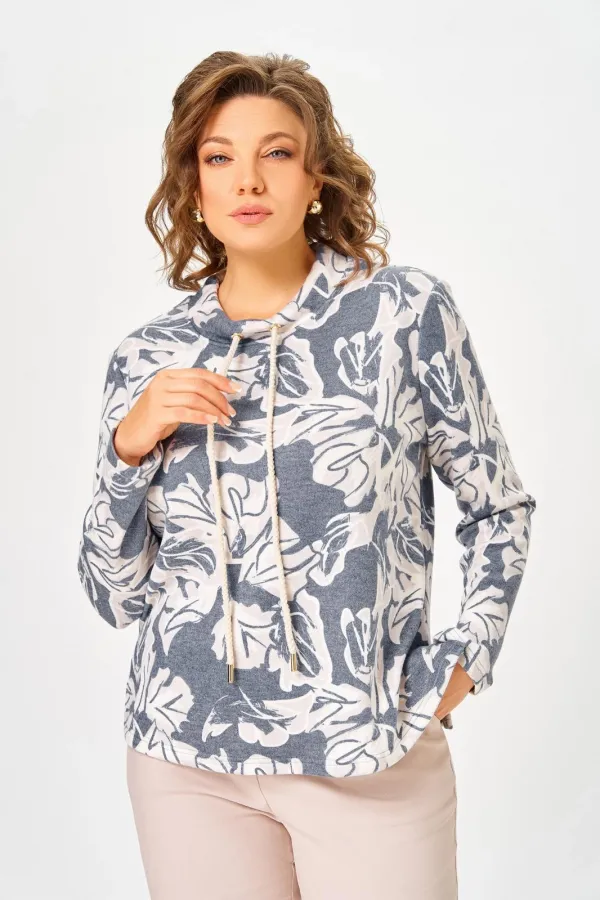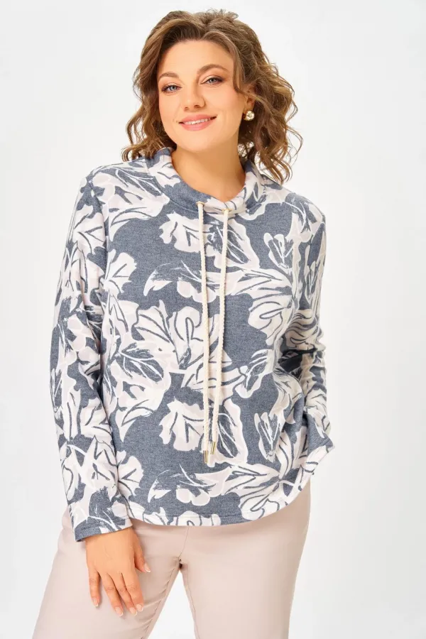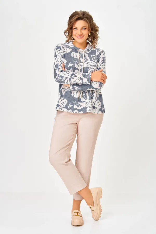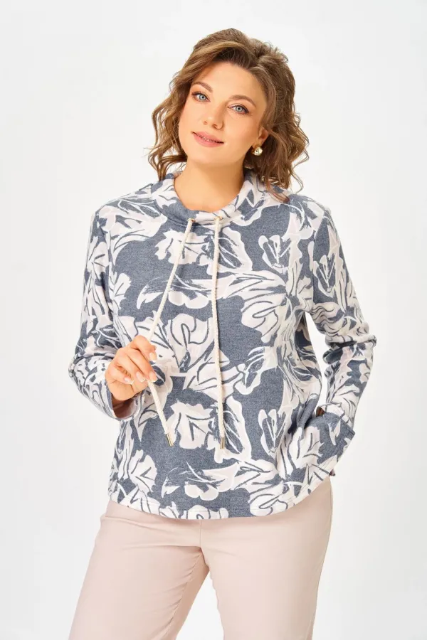 Код Товара: 883 дымчато-синий/принт «бежево- молочные абстрактные цветы» Swa