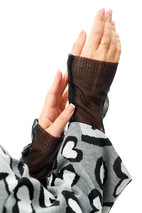 Джемпер, манжеты. Стильный трикотажный джемпер со съемными кружевными манжетами. Джемпер полуприлегающего силуэта из качественного турецкого трикотажного полотна с актуальным дизайном «сердечки». Горловина цельная «... Читать далее...