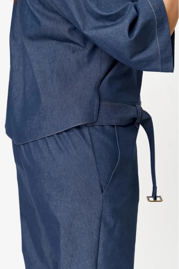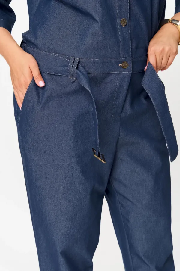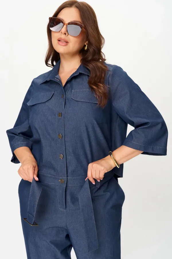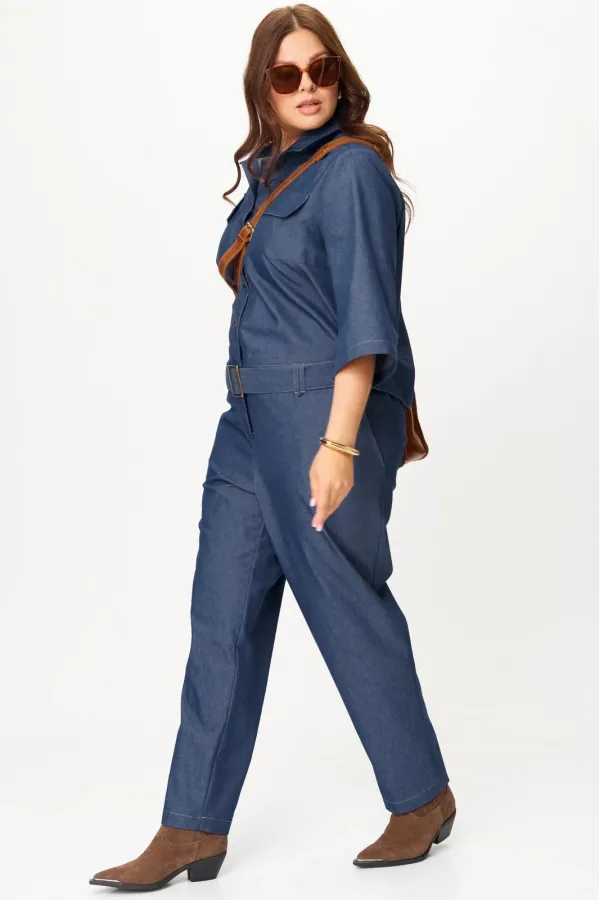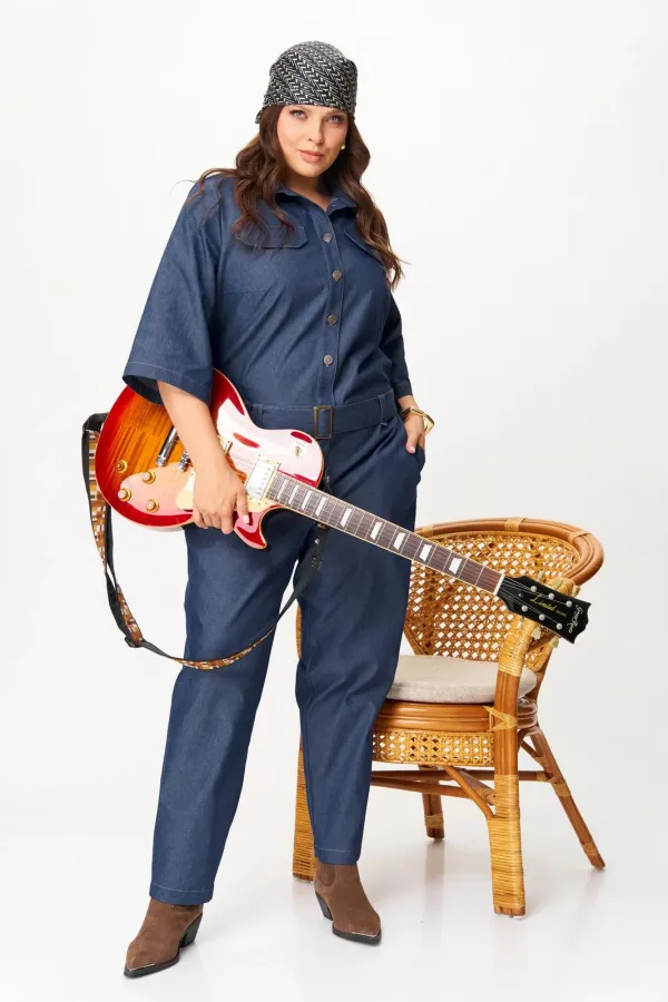 Джинсовый комбинезон для истинных модниц. Стильный и оригинальный в своем исполнении. Отрезной по линии талии, с отлетной спинкой, что придает образу легкость и эффектность. Съемный пояс, который позволяет регулировать высоту посадки и степень прилегания.