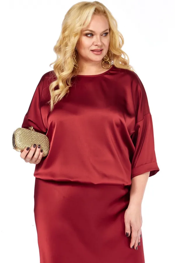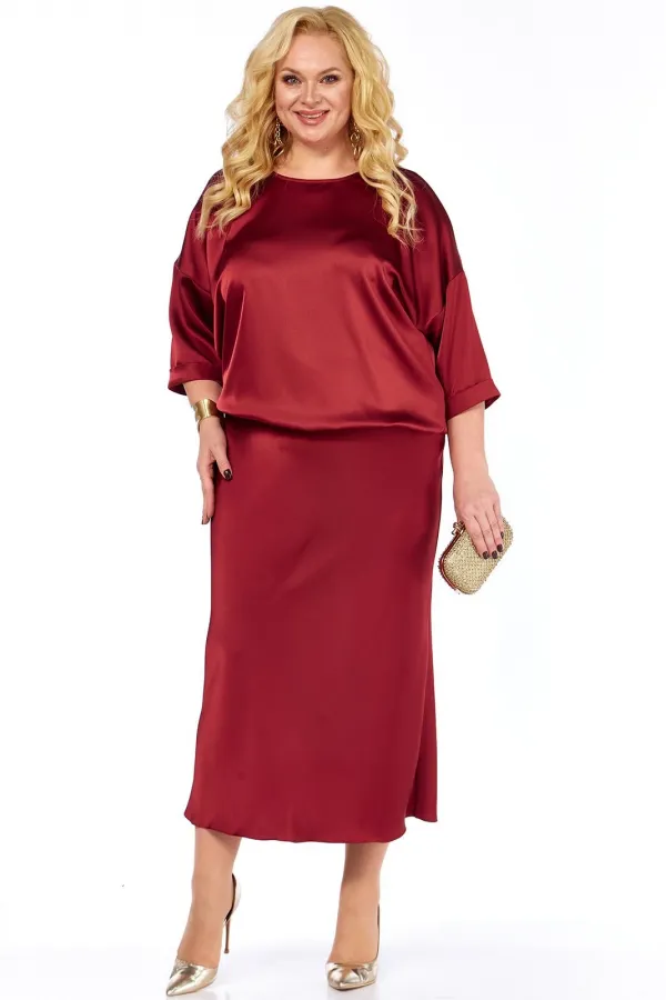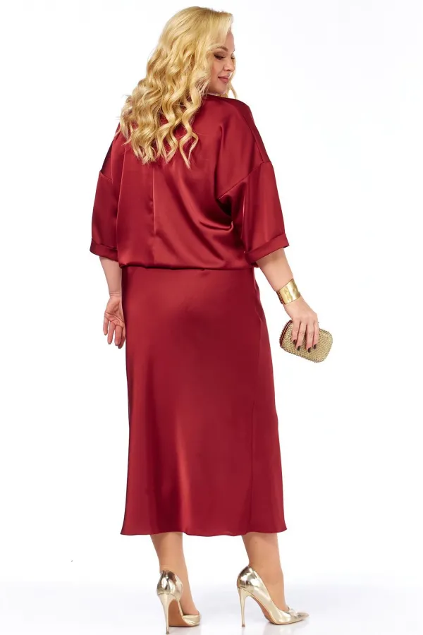 формы. Рукав втачной, линия плеча спущена. Юбка миди скроена по