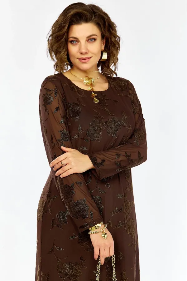 Роскошный плательный комплект. Платье на трикотажной подкладке полуприлегающего силуэта из мягкой стретч-сетки украшенной флоковым напылением с позолотой создает эффект дорогого кружевного орнамента. Образ дополняет Свер... Читать далее...