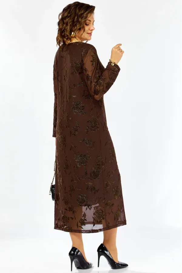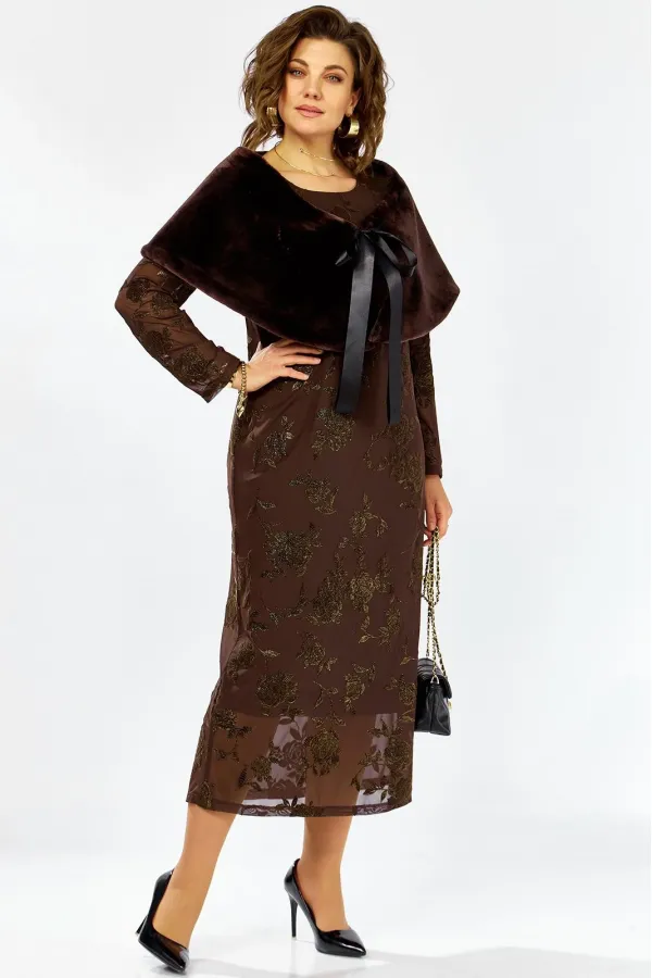 Роскошный плательный комплект с изящной меховой горжеткой . Платье на трикотажной подкладке полуприлегающего силуэта из мягкой стретч-сетки украшенной флоковым напылением с позолотой создает эффект дорогого кружевного ор... Читать далее...