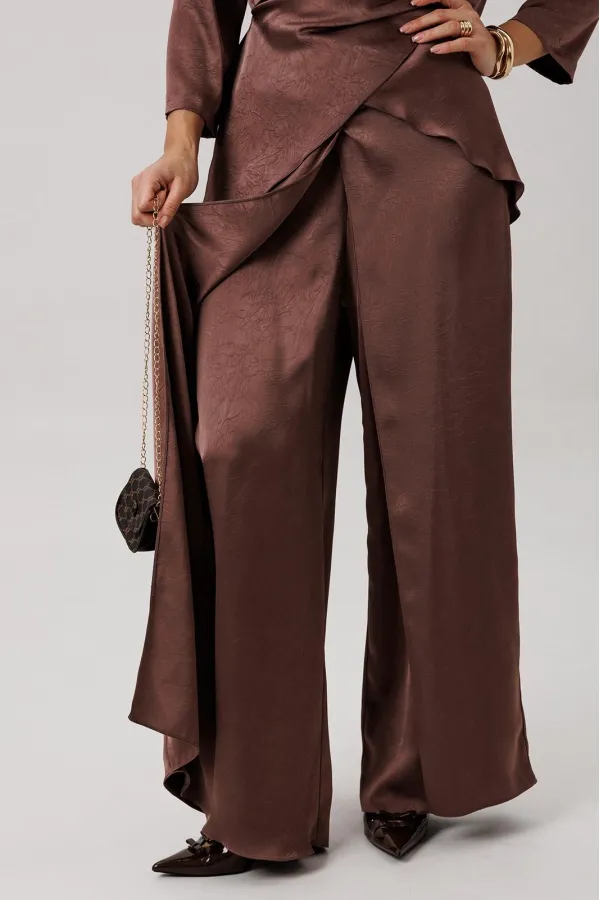 Широкие, длинные, струящиеся брюки-палаццо - одна из самых актуальных моделей брюк. Они обладают свойством добавлять нотку расслабленного шика любому образу, и, несомненно, они особенно эффектно выглядят в нарядных комплектах.