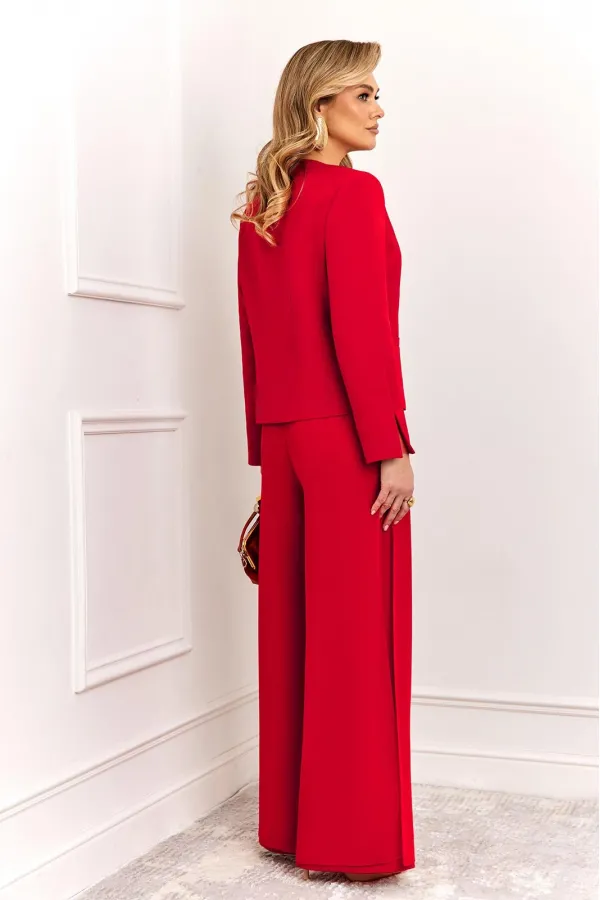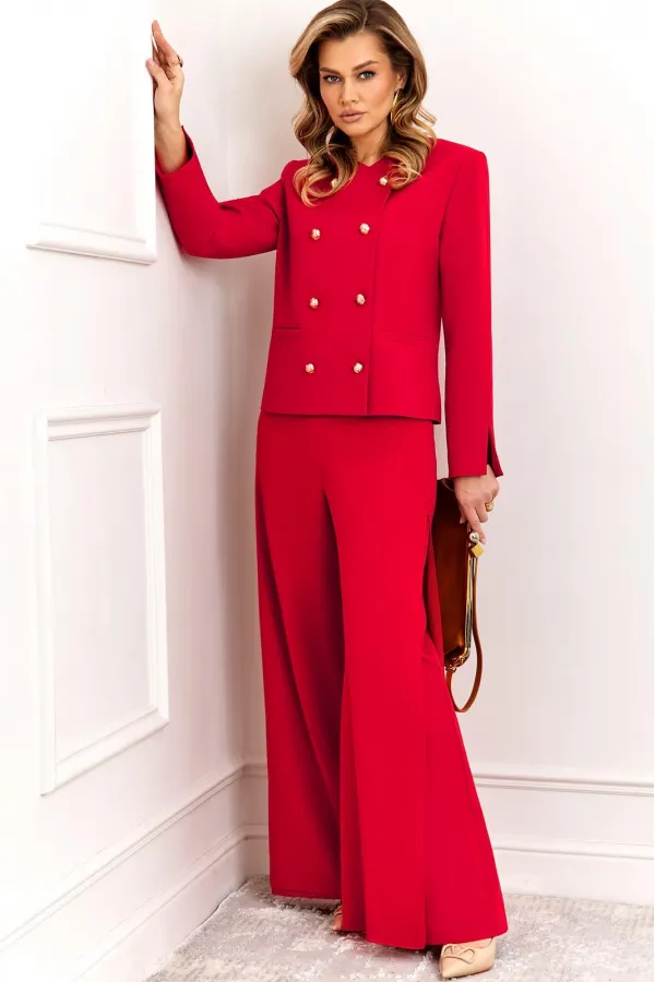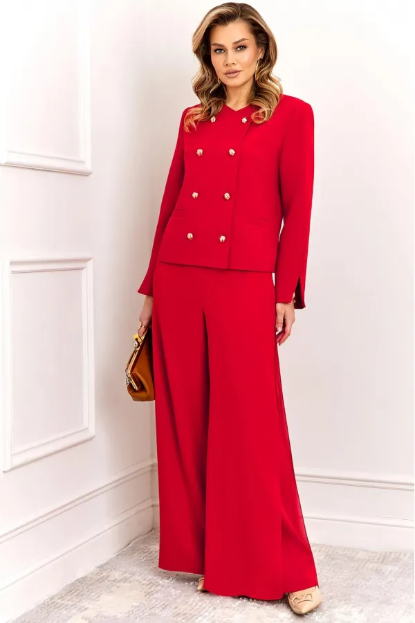 Стильный и суперэффектный костюм, состоит из жакета и брюк. Жакет полуприлегающего силуэта, выполнен из премиальной ткани Зара с добавлением вискозы. Жакет двубортный, по переду с застежкой на металлические золотые пуговицы и V-образным вырезом горловины, что придает модели особый шарм и нарядность! Жакет полностью на премиальной подкладке Grand. Рукав жакета втачной, полной длины, с небольшим разрезом по низу! Брюки — это отдельный вид искусства! Брюки прямого силуэта, выполнены из ткани Зара с добавлением вискозы, верхний слой брюк выполнен из летящего шифона, что придает модели особый стиль и нарядность. Брюки сбоку с застежкой на потайную молнию и пуговицы. Модель идеально украсит праздничный образ, но в тоже время прекрасно подойдет для ежедневной носки!
