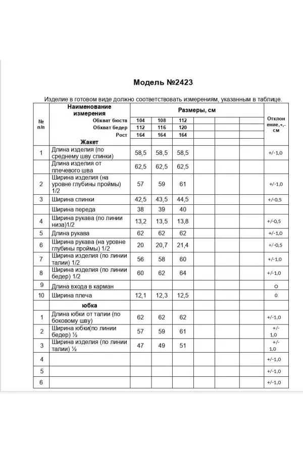 Юбка полуприлегающего силуэта книзу чуть заужена, на подкладке, на притачном поясе с резинкой по боковым, с застёжкой на потайную молнию в среднем шве заднего полотнища и петлю, пуговицу по поясу. Переднее полотнище с талевыми выточками. Заднее полотнище с талевыми выточками и шлицей.