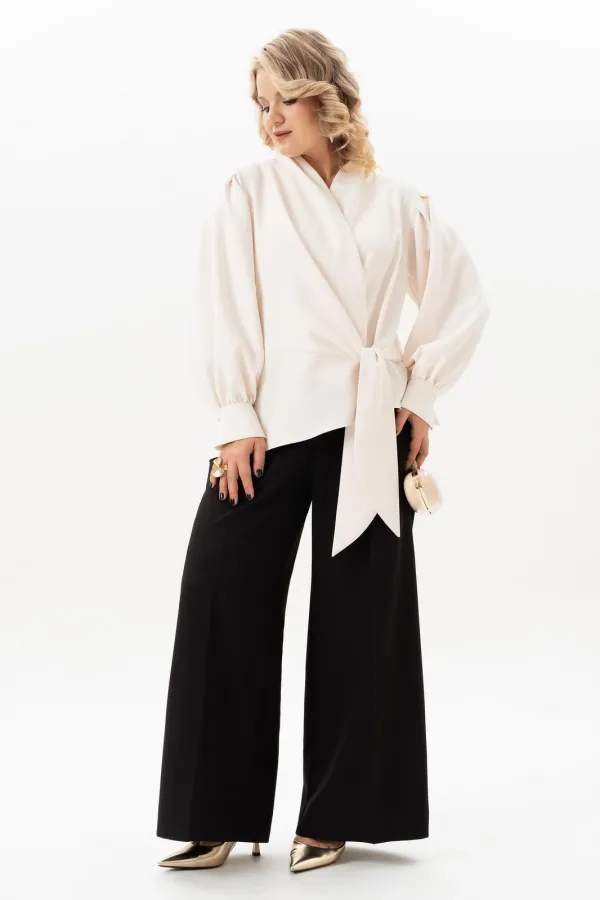 Элегантный женский костюм из ткани «марчано» стильный и универсальный наряд для различных мероприятий. Модель двойка сочетает в себе современные тенденции 2025-26 года с классическими акцентами. Подходит как для офиса, так и для особых случаев ( новый год, корпоративы, свадьбы или дни рождения) обеспечивая комфорт и уверенность в себе. Брюки с широкими штанинами палаццо выгодно подчеркивают женственные формы, а свободный крой обеспечивает удобство в любой ситуации. Этот костюм больших размеров идеально подойдет для прохладного времени года благодаря легкому материалу и возможности сохранить тепло. Текстура ткани добавляет изысканности и роскоши, делая образ особенно привлекательным на особых событиях. Благодаря универсальному дизайну, костюм можно успешно сочетать с различными элементами гардероба, создавая разнообразные стили от официального до повседневного. На брюках обработаны карманы в боковых швах, по талии пояс с застежкой на молнию и частично на резинке. Жакет с отрезной баской и воротником стойкой переходящей в борта. Застежка на потайную петлю и пуговицу и на завязки. Рукав длинный, втачной на манжете. По окату рукава обработаны складки. Доступен в различных размерах, в том числе и для женщин пышных форм, этот костюм позволит каждой леди подобрать идеальный вариант. Красный цвет костюма подчеркнут вашу индивидуальность и хороший вкус. Независимо от того, выберите ли вы его для офиса или вечера, этот костюм станет верным спутником в создании вашего стильного образа.