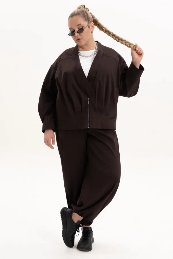 Представляем трех предметный комплект Алладин. Лёгкий жакет-курточного типа на подкладке, майка и брюки-алладины подходит для девушек любого возраста. Костюмная ткань с хорошим стрейч-эффектом добавит комфорта при носке изделия. Жакет свободного силуэта на подкладке с воротником-стойка. Спинка без среднего шва c отрезной кокеткой, где заложены небольшие складки. По переду жакета есть застроченные складки от низа, карман в листочку, застёжка на молнию и потайной магнит. Рукав втачной, длинный, по низу есть также застроченные складки. Этот демисезонный жакет станет отличным вариантом для весенних и осенних дней, когда хочется выглядеть привлекательно и чувствовать себя комфортно и модно. Майка из вискозы с круглым вырезом горловины, спущенным плечом, коротким рукавом. Удобные и комфортные брюки-алладины-это универсальная модель для повседневной носки, отдыха, прогулок. Этот комплект- незаменимая в гардеробе вещь, которая подчеркнёт всю утончённость женской натуры и позволит всегда чувствовать себя комфортно. Брюки идут с карманами в боковых швах. Пояс в области задней части брюк дополнен эластичной тесьмой, по низу брюк есть фиксаторы и эластичный шнур для регулировки ширины. Свободный широкий силуэт ,мягкая посадка и комфортная резинка на талии обеспечит удобство и свободу движений. Элегантная повседневная модель для города. Замечательный комплект в Ваш гардероб!