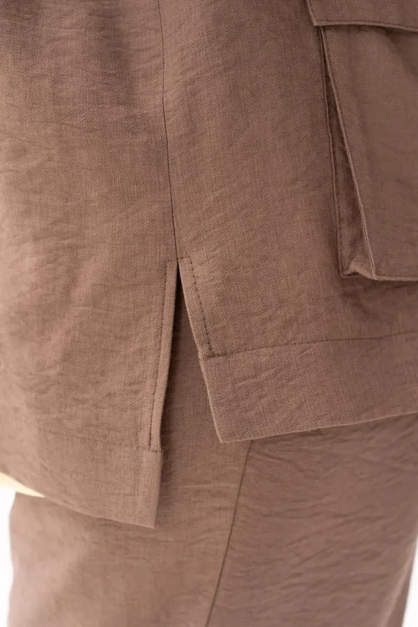 | Ткань | жакет брюки: хлопок - 72% полиэстер - 26% эластан - 2%; блуза: полиэстер - 75% вискоза - 21% спандекс - 4% |